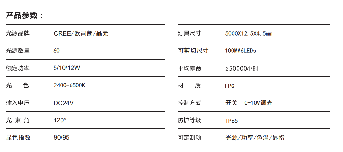 控 制:單色常亮 / 可調(diào)光